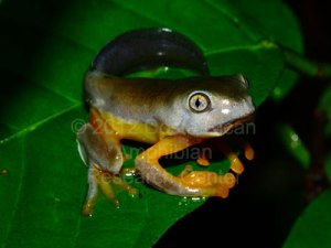 A Cruziohyla calcarifer neonate emerging from one of the breeding tubs in the reserve. Like Loading...